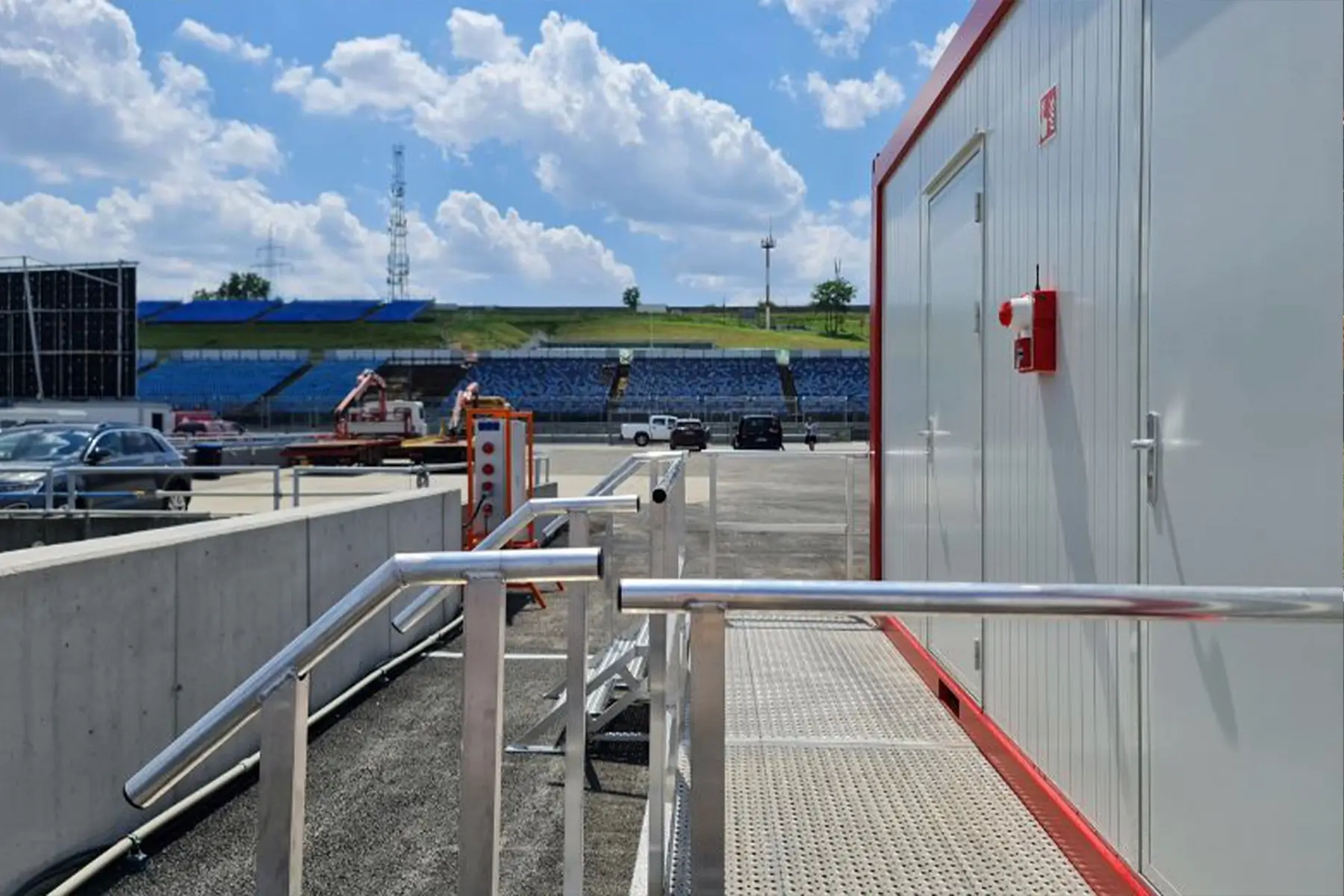 Working in partnership with Hungarian specialist High Security Kft, Ramtech deployed its WES3 wireless fire and evacuation system across four container groups within the paddock area. WES3 is certified to EN54-25, the European standard governing radio-based fire alarm components. This certification provides third-party assurance of performance, signal integrity and reliability, which is critical for temporary fire alarm systems used in high-profile environments.